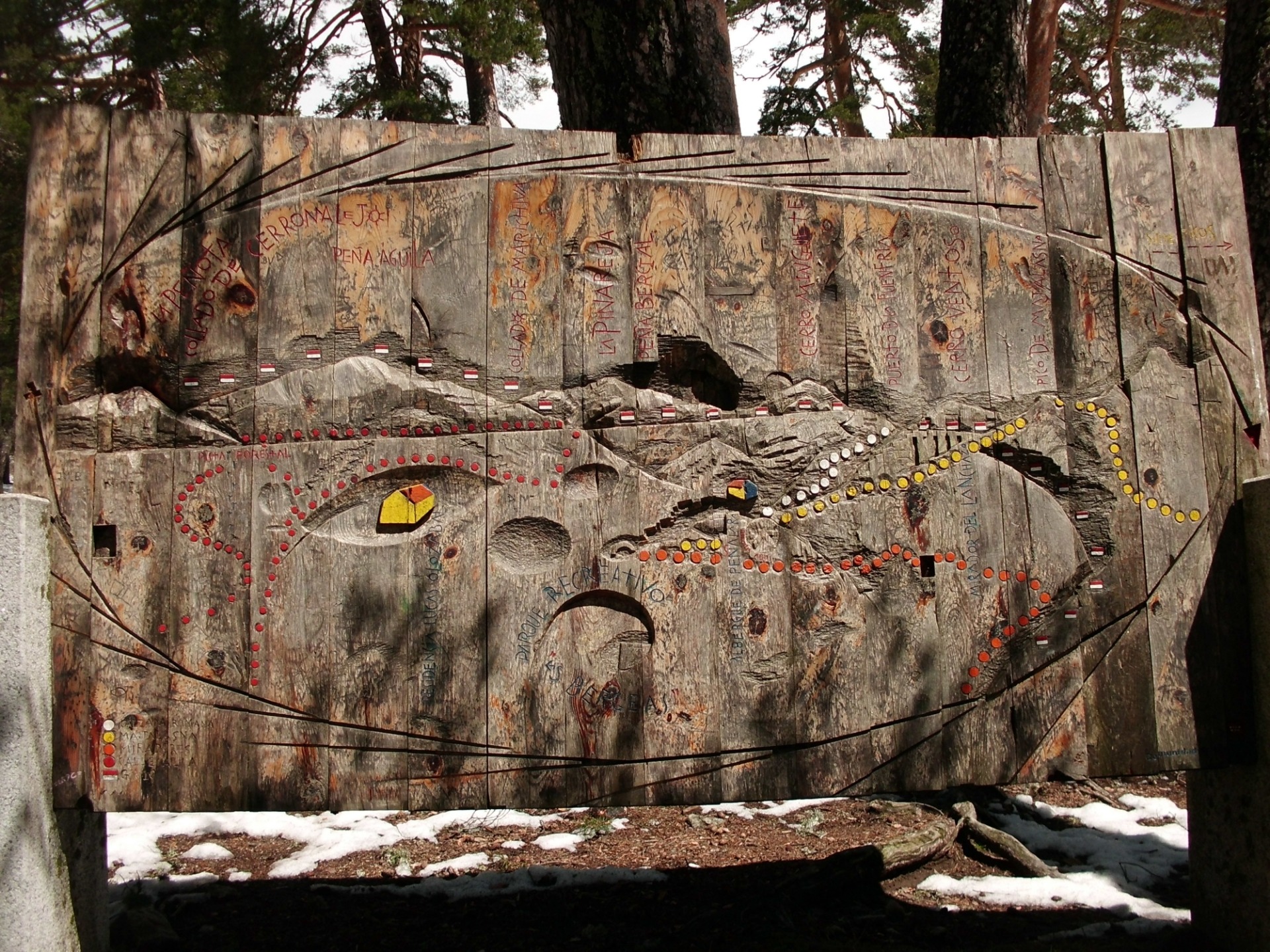 * En la ruta de la calzada romana: foto en el mural de madera de la pradera de Los Corralitos.