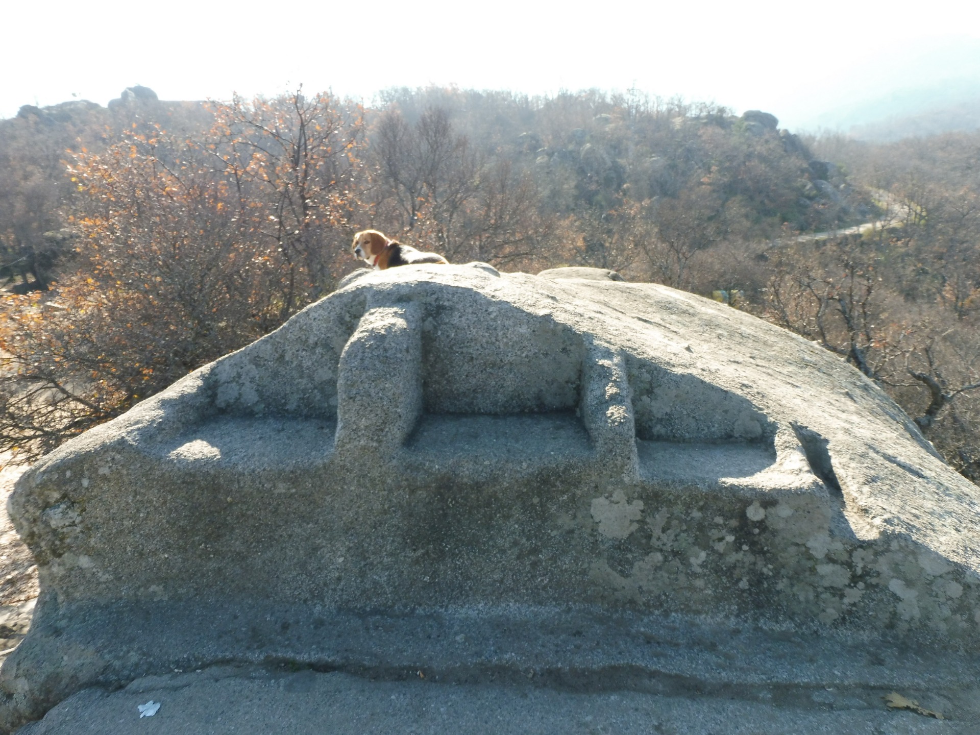* En la ruta de la Silla de Felipe II: foto sentados en la Silla.